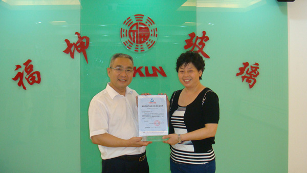 南玻集团副总经理赵光豪(左)授予我司加工体系认证证书
