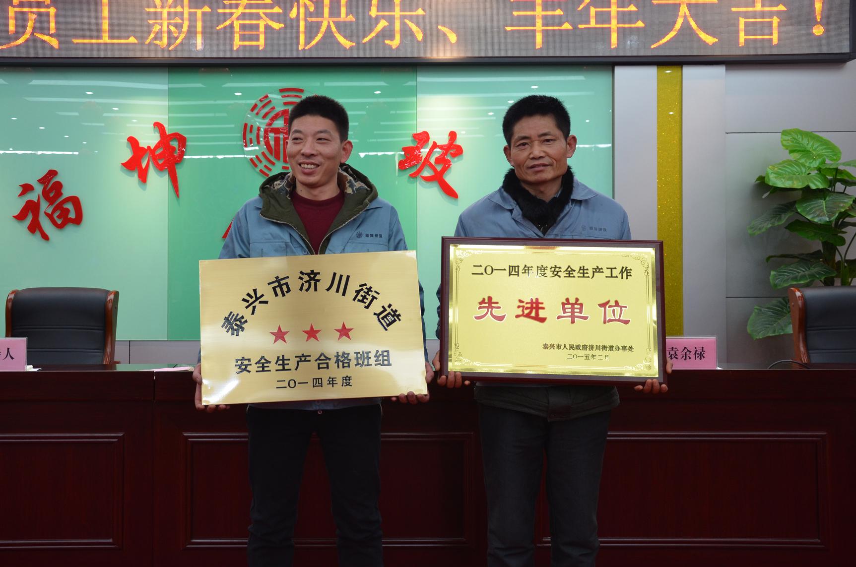 公司被济川街道授予“安 全生产先进单位”,切割班组被授予“安全生产三 星 级班组”