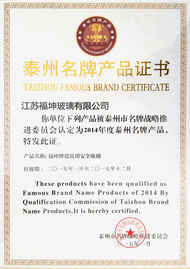 我司产品被泰州市名 牌战略推进委员会认定为2014年度泰州名 牌产品。