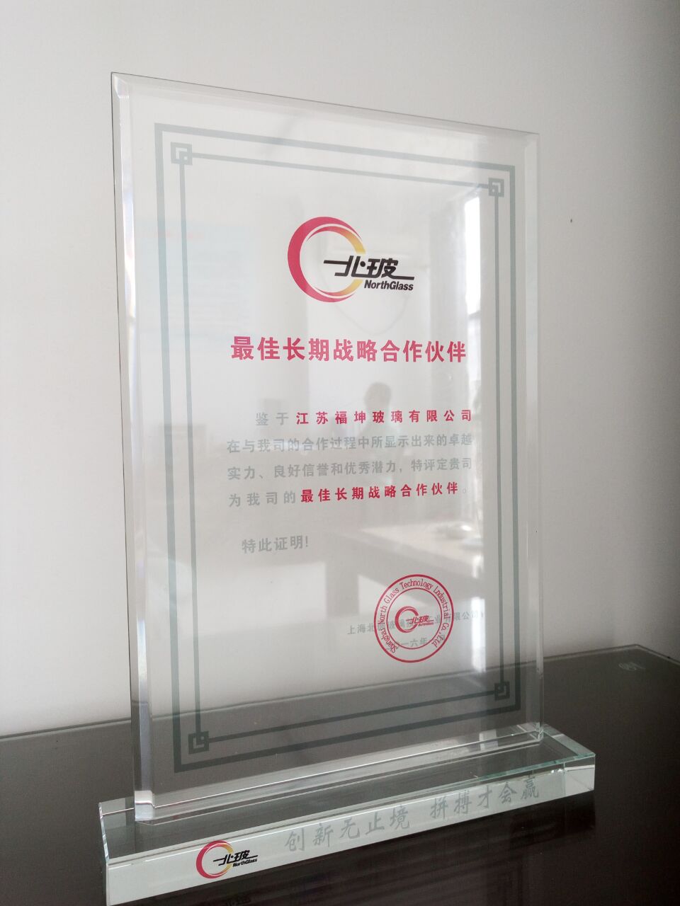 上海北玻授予我司最佳长期战略合作伙伴